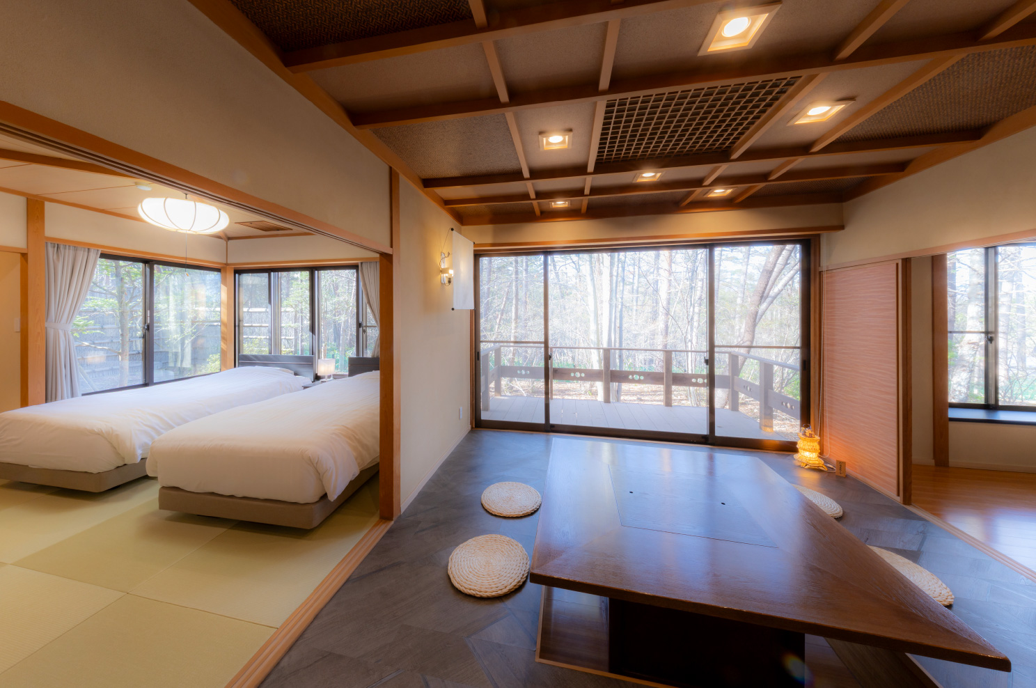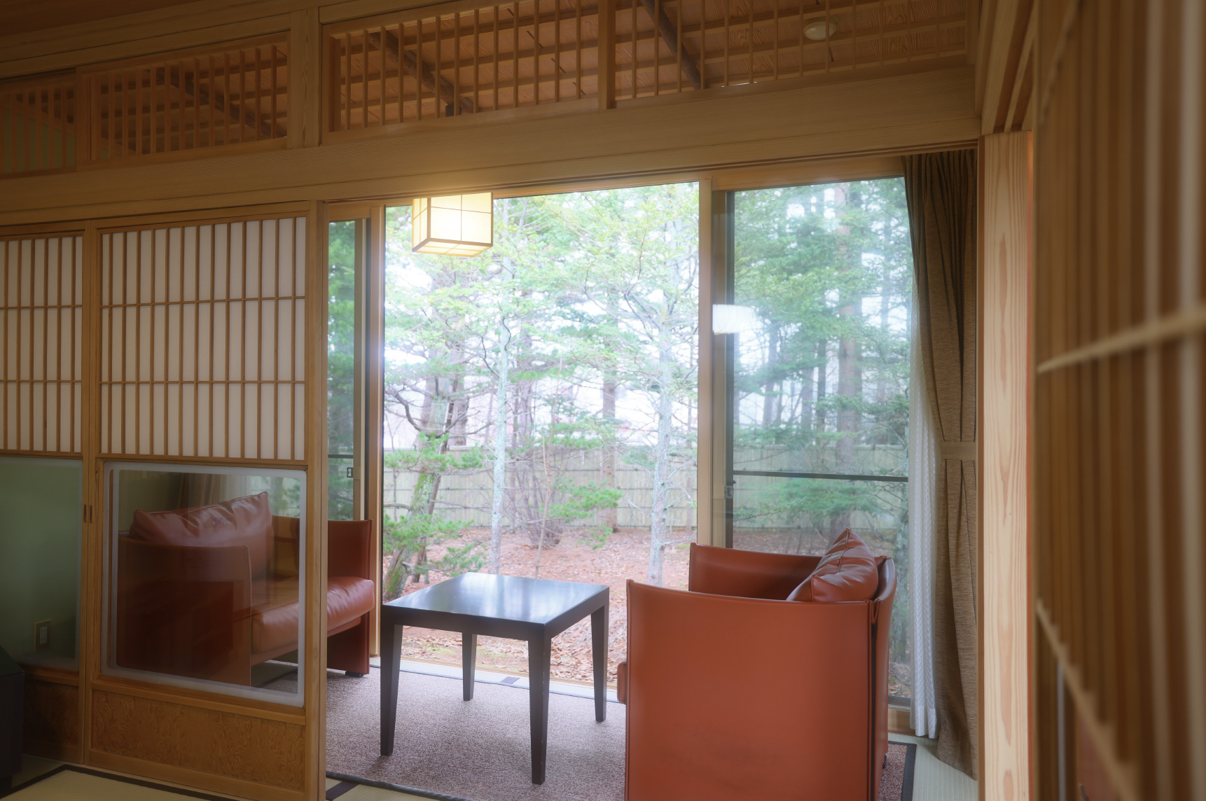 緑の潤いを傍らに寛ぐ、上質な空間。